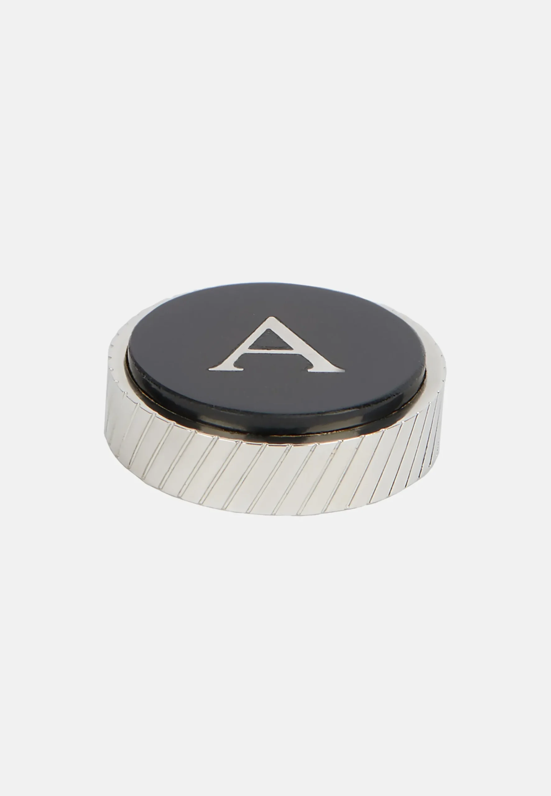 il se caractérise par la lettre émaillée sur fond noir, à appliquer sur la base spéciale pour boutons de manchette en métal.