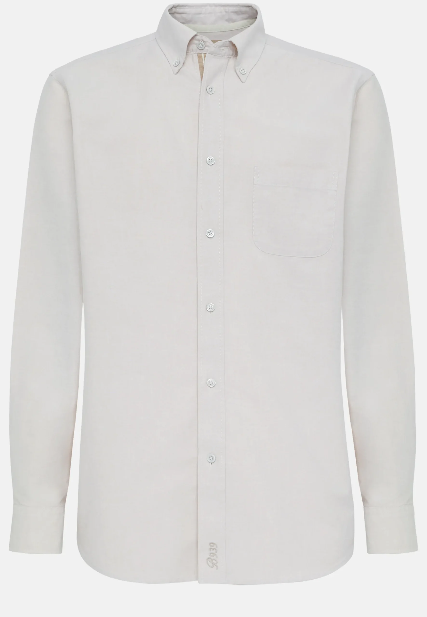 Ce modèle présente une bande à chevrons sur la patte de boutonnage et une broderie B939 en bas sur le devant.