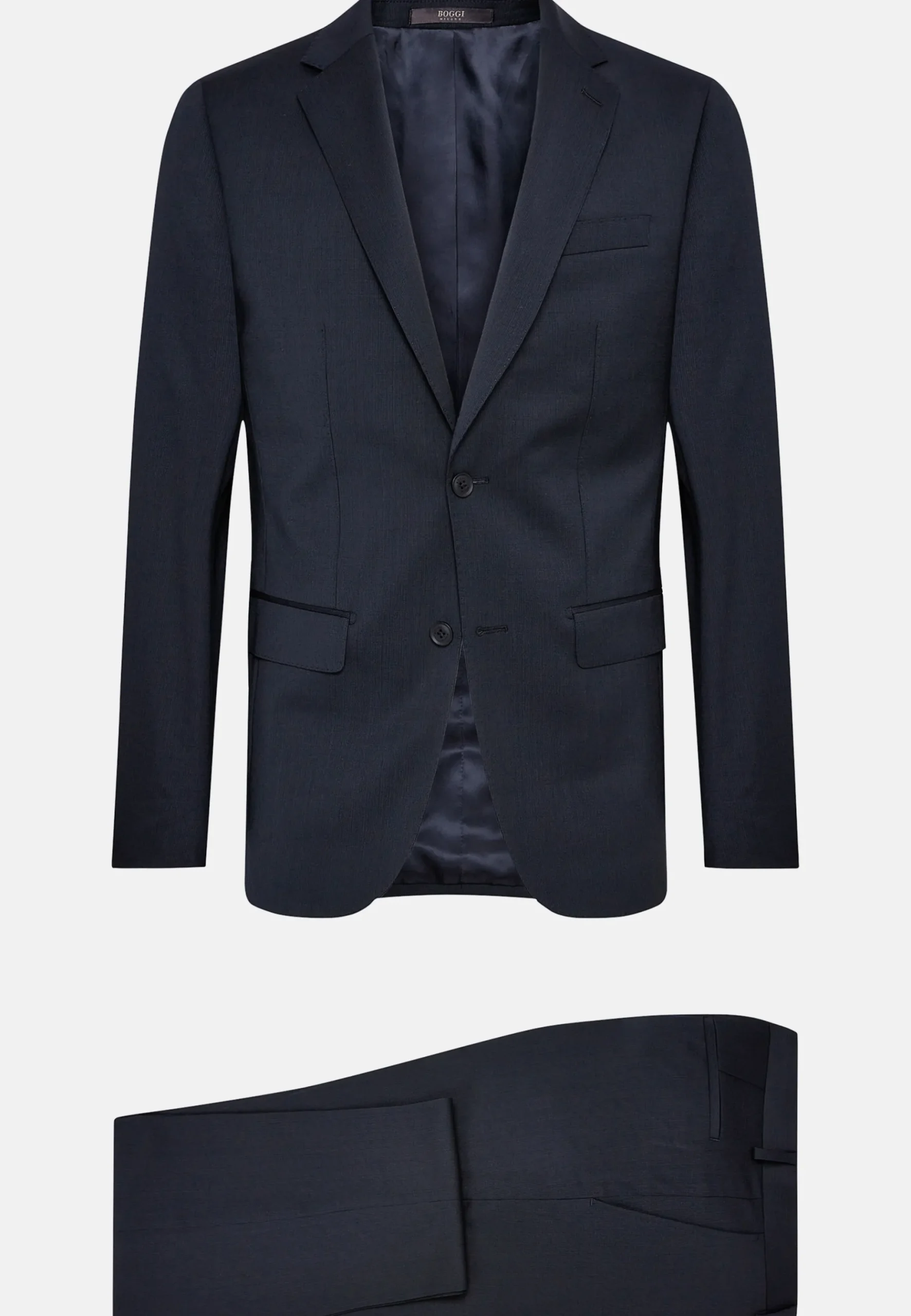 Costume slim fit à simple boutonnage, entièrement doublé avec poches à rabat.