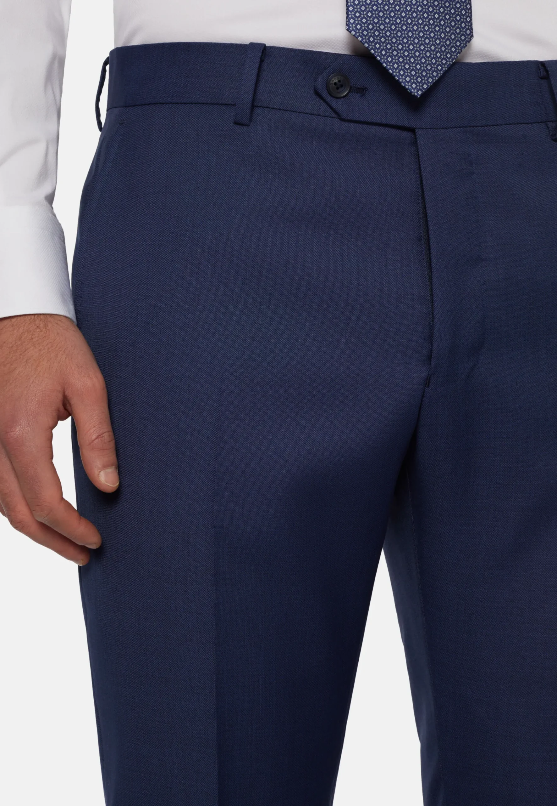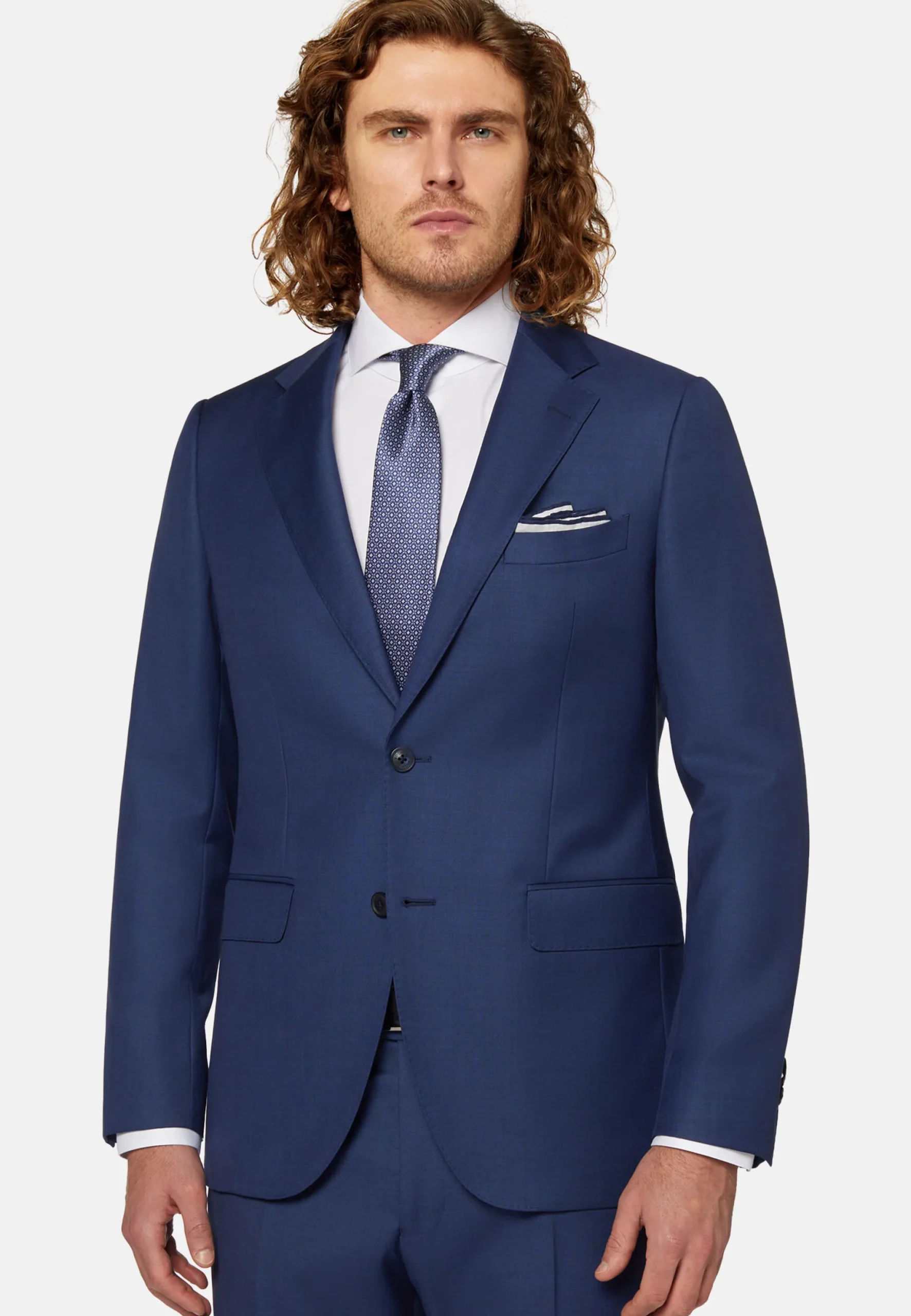 Costume coupe droite, confection semi-entoilée, à simple boutonnage, entièrement doublé avec poches à rabat.