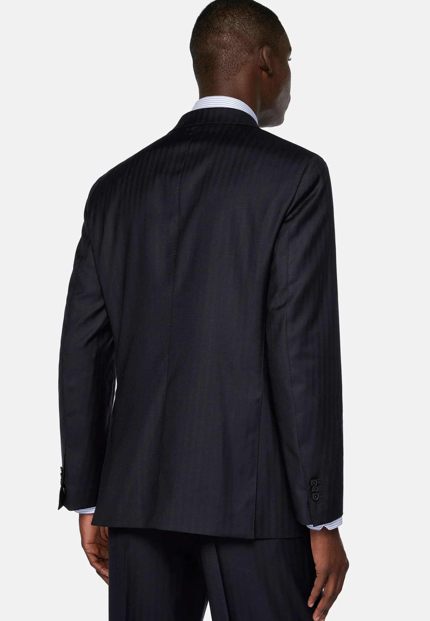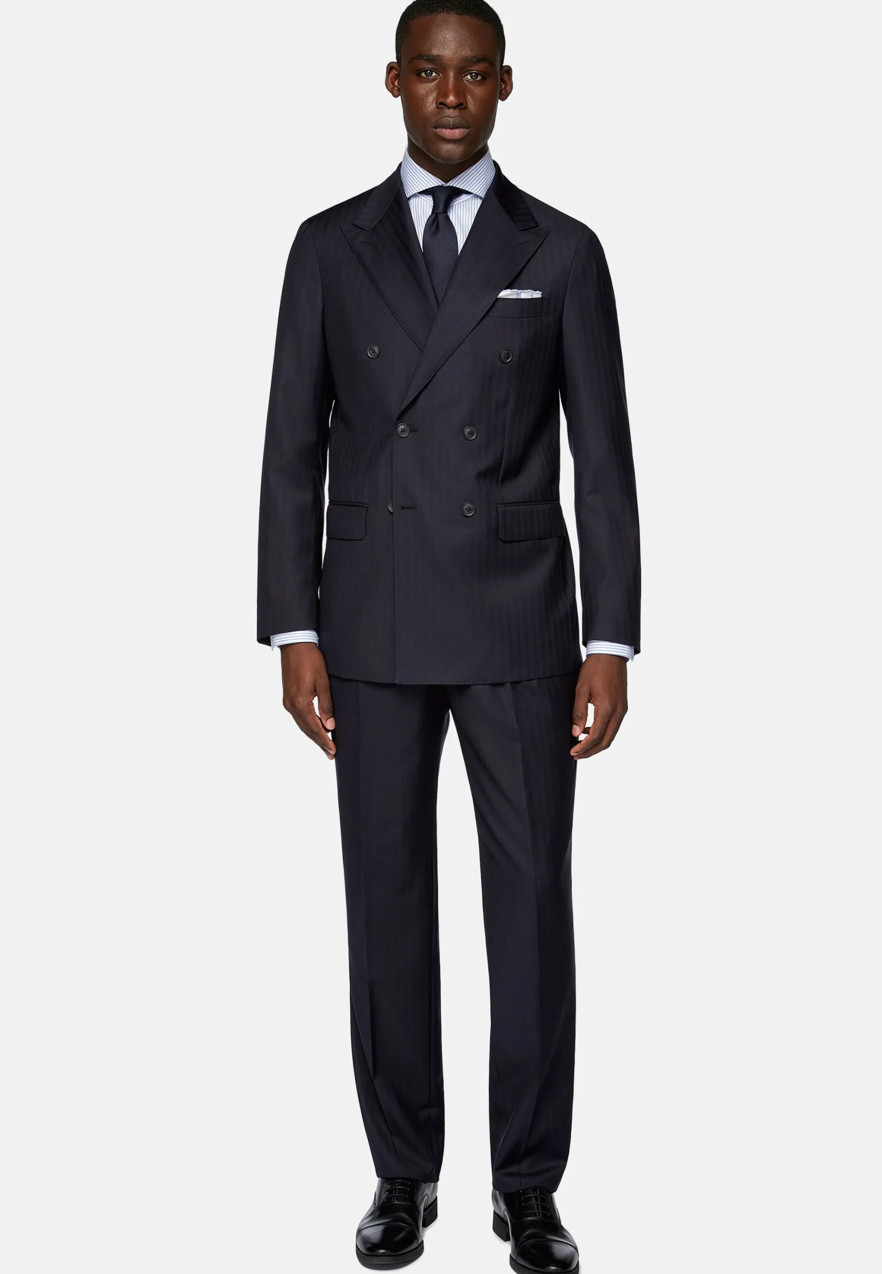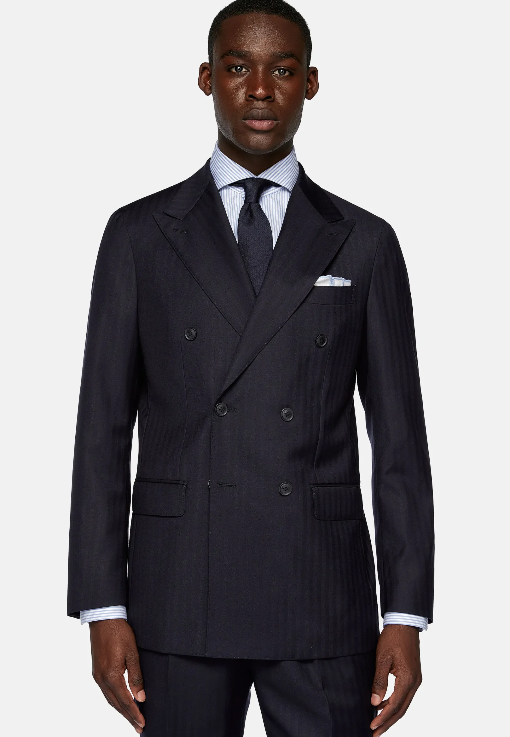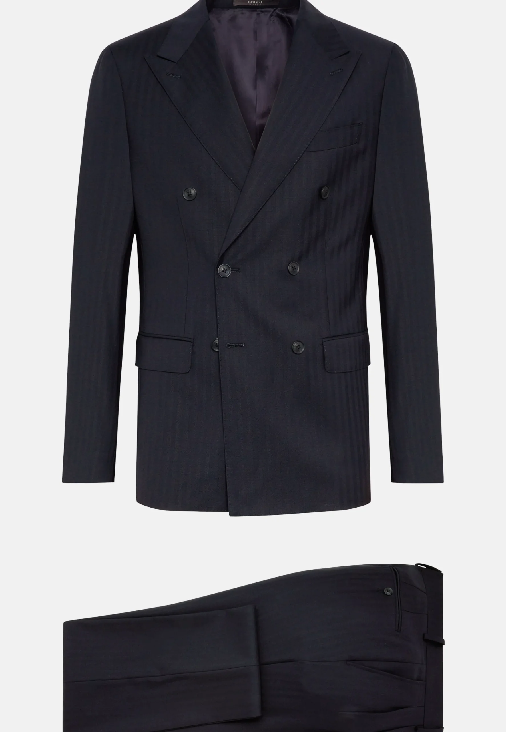 Costume croisé regular fit, confection semi-entoilée, entièrement doublé avec poches à rabat.