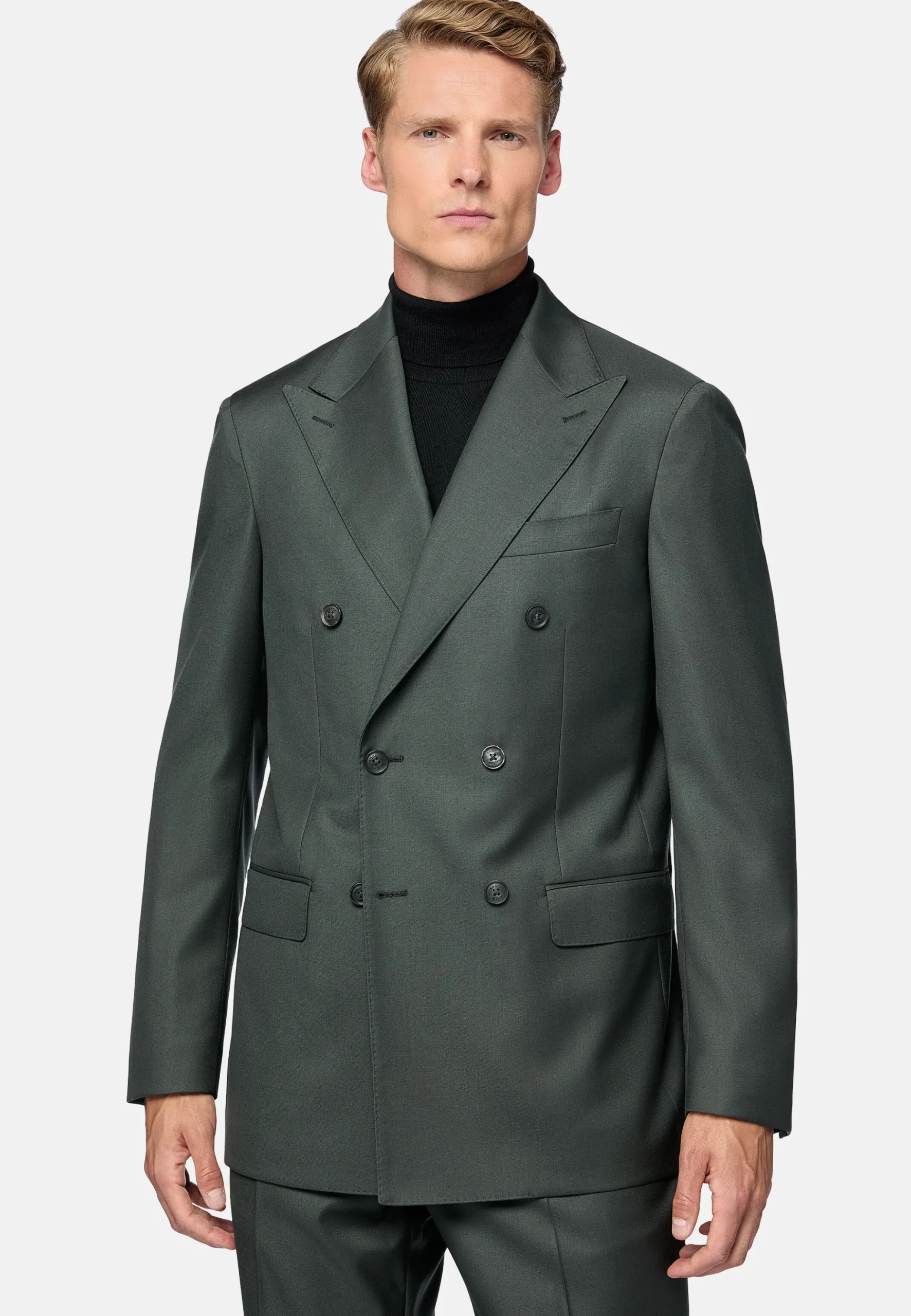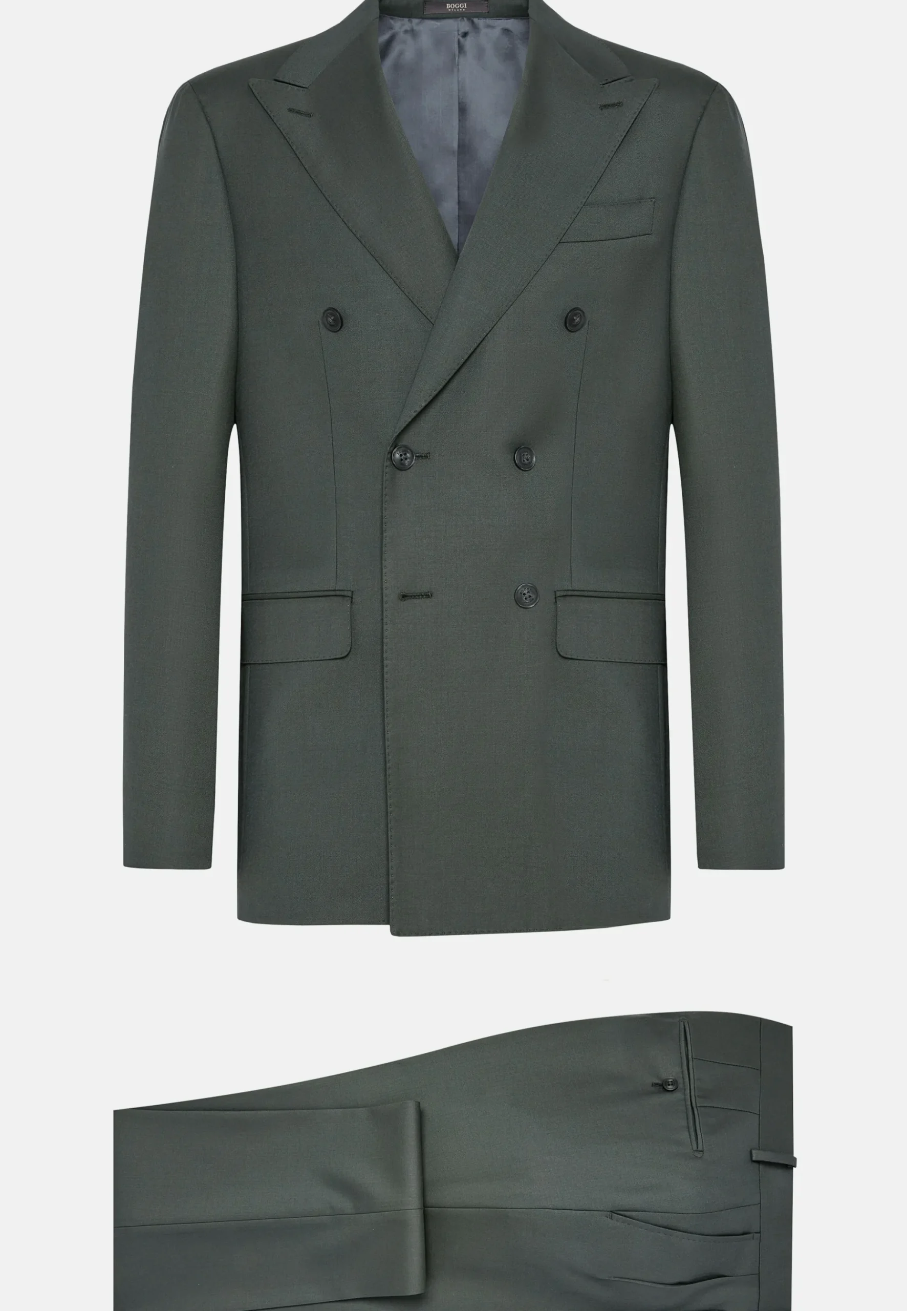 Costume croisé regular fit, confection semi-entoilée, entièrement doublé avec poches à rabat.