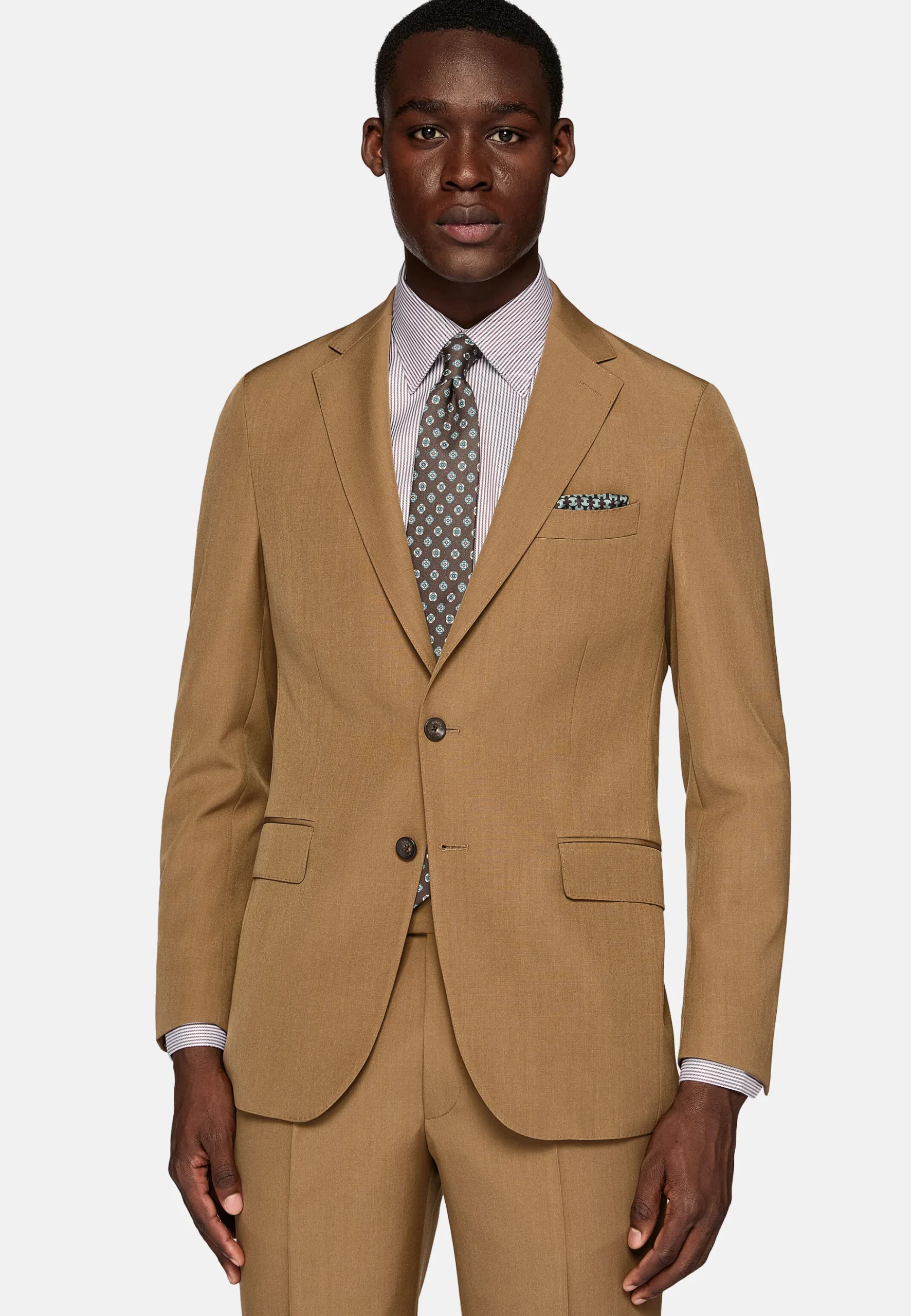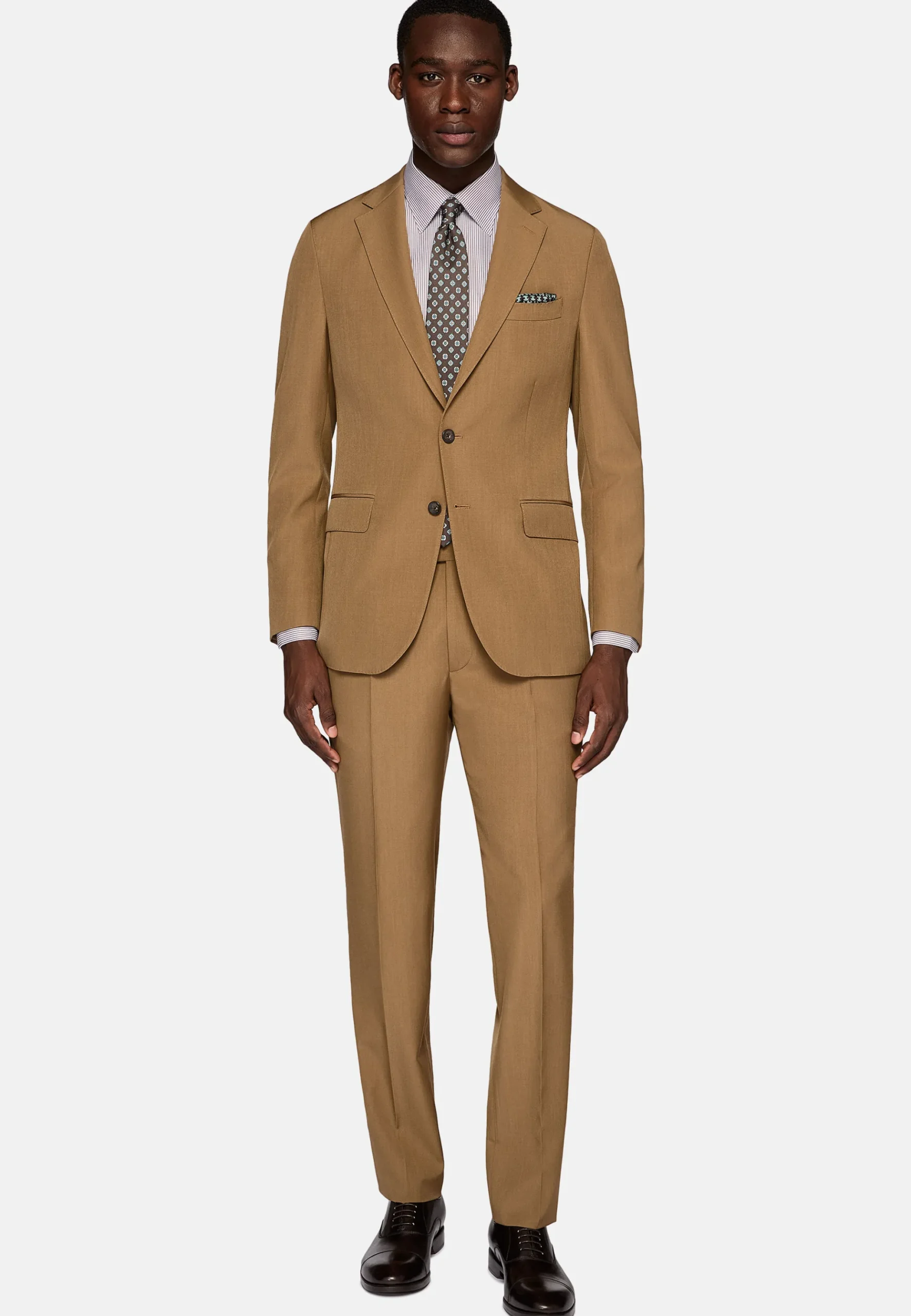 Costume coupe droite à simple boutonnage, entièrement doublé avec poches à rabat.