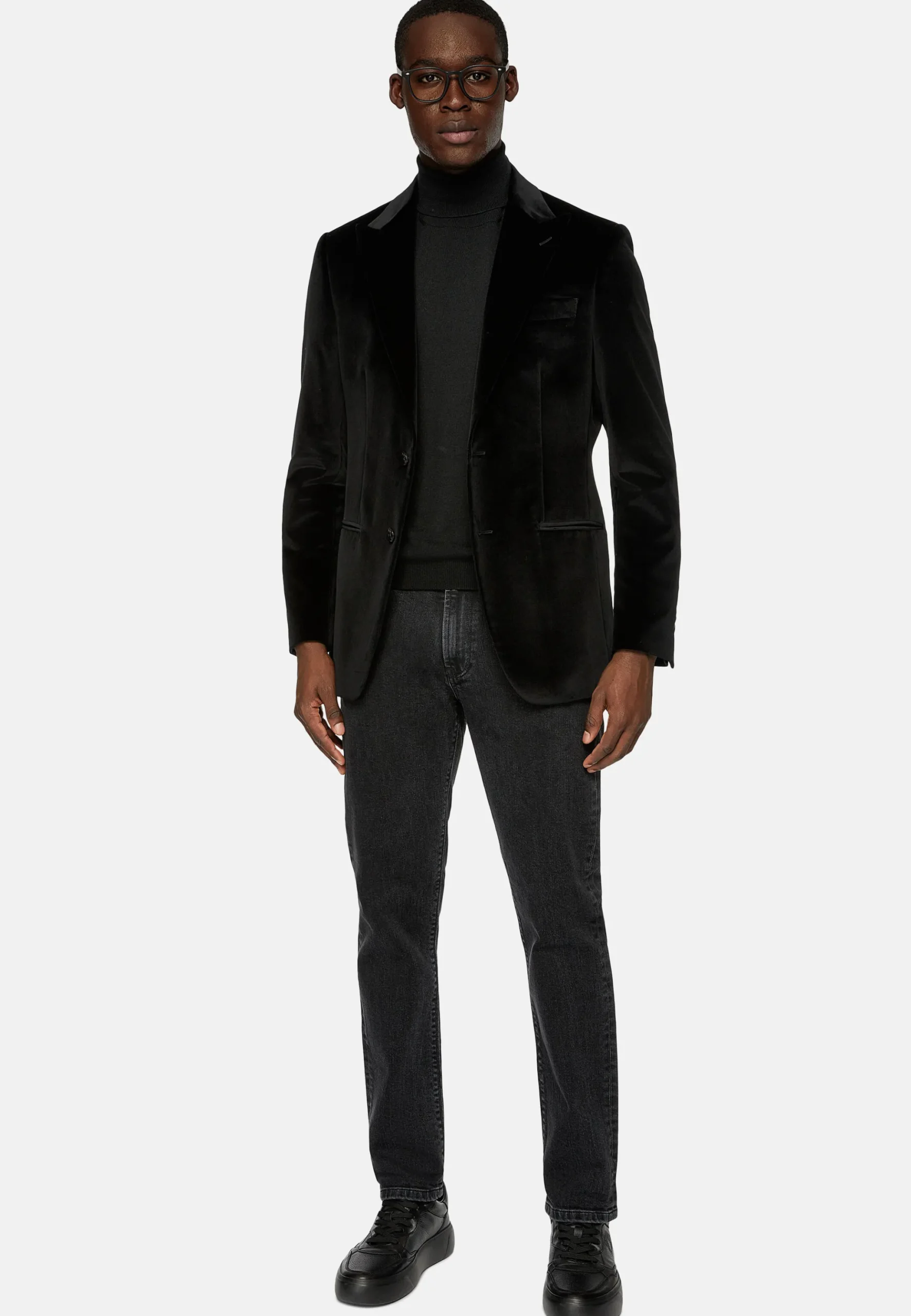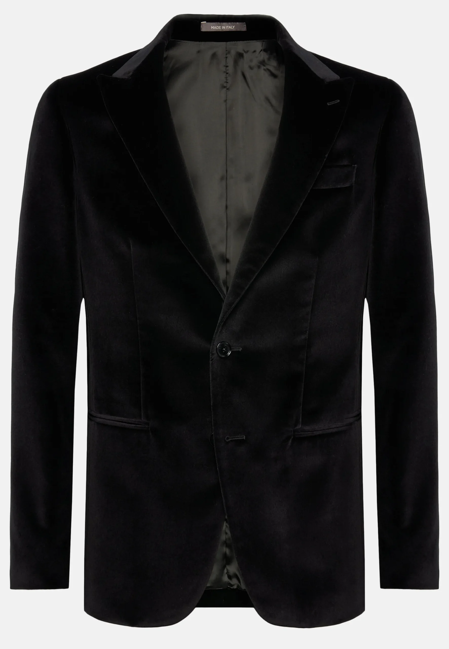 Veste à simple boutonnage, revers en pointe, entièrement doublée avec poches passepoilées.