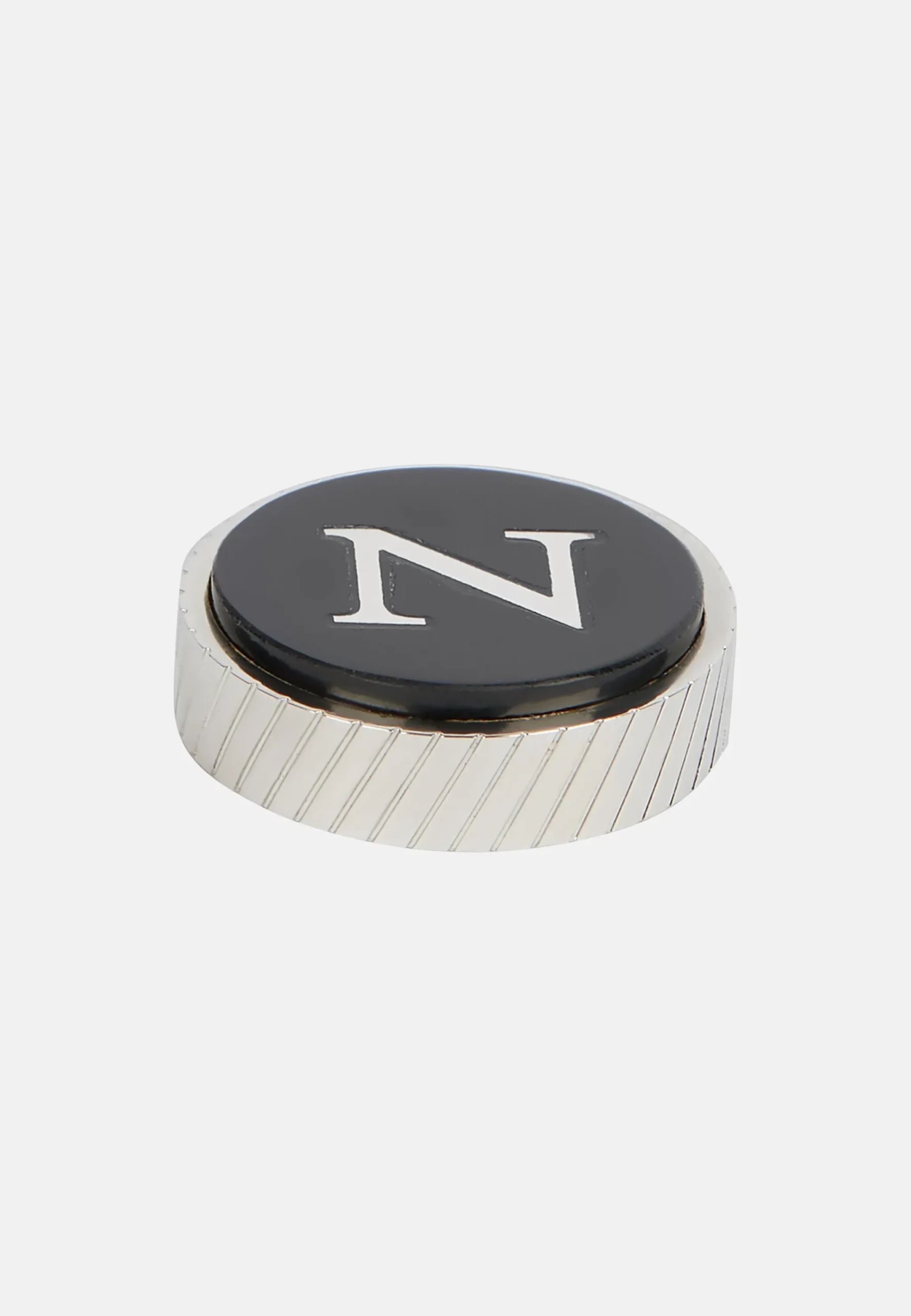 il se caractérise par la lettre émaillée sur fond noir, à appliquer sur la base spéciale pour boutons de manchette en métal.