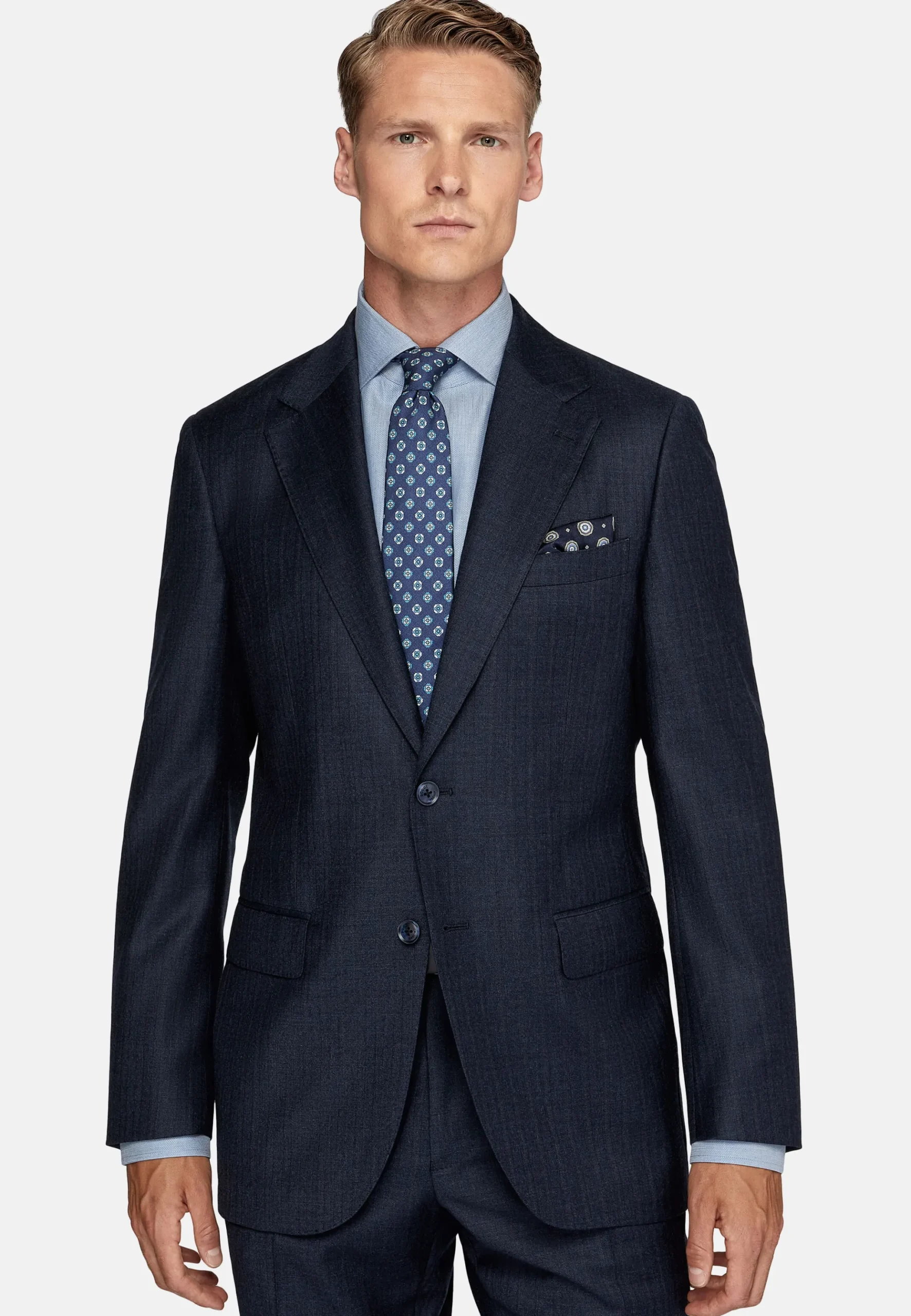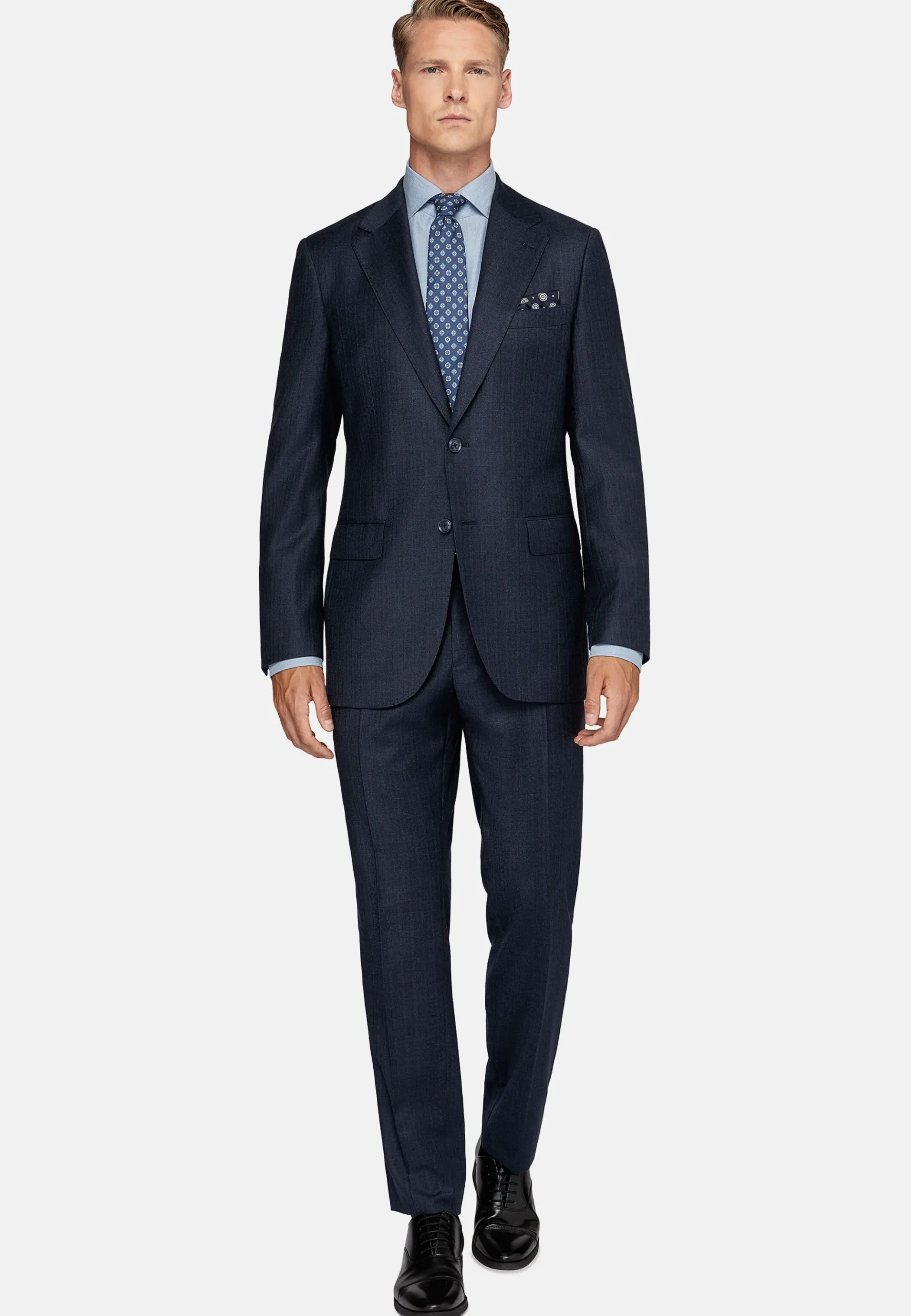Costume coupe droite, confection semi-entoilée, à simple boutonnage, entièrement doublé avec poches à rabat.