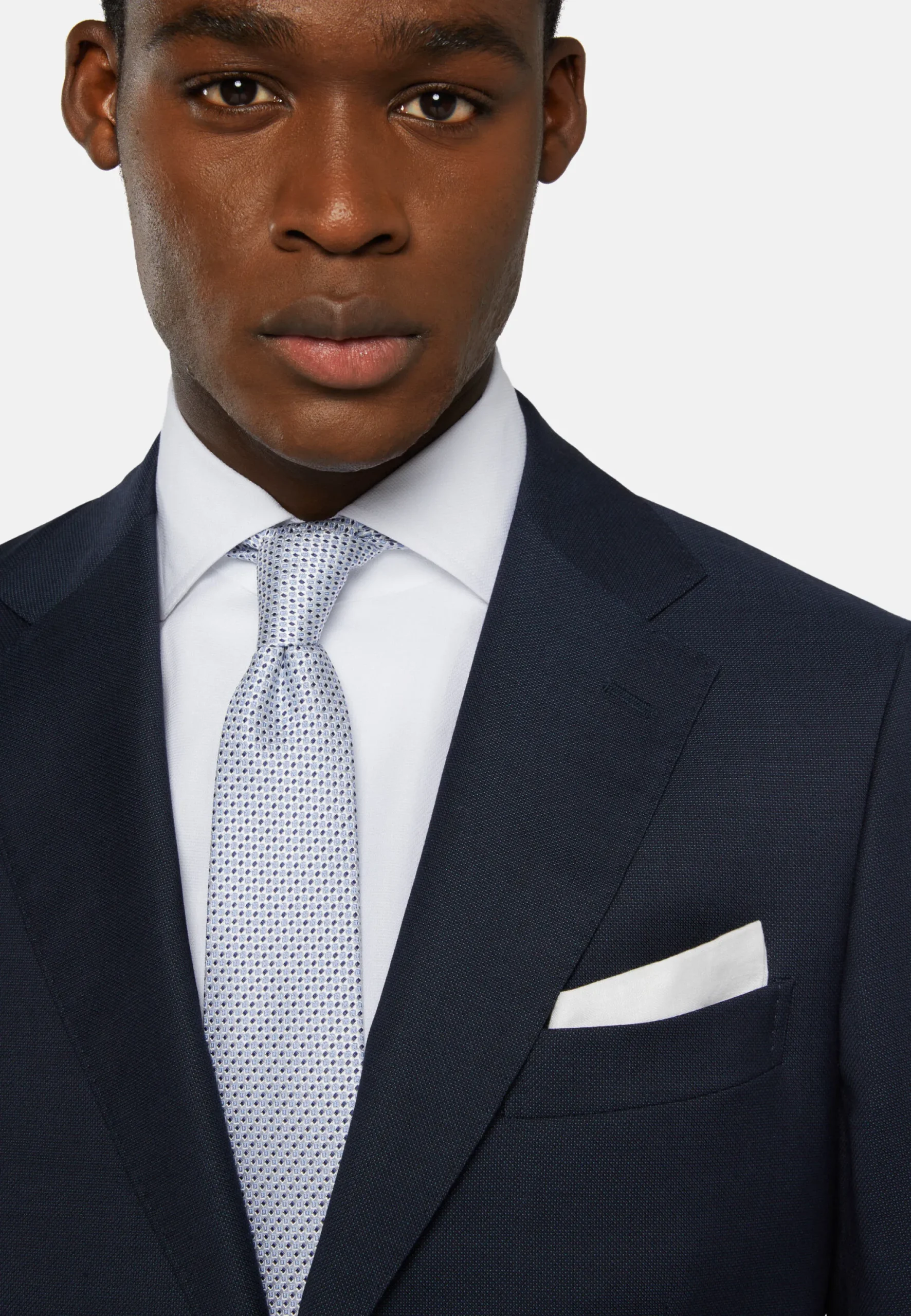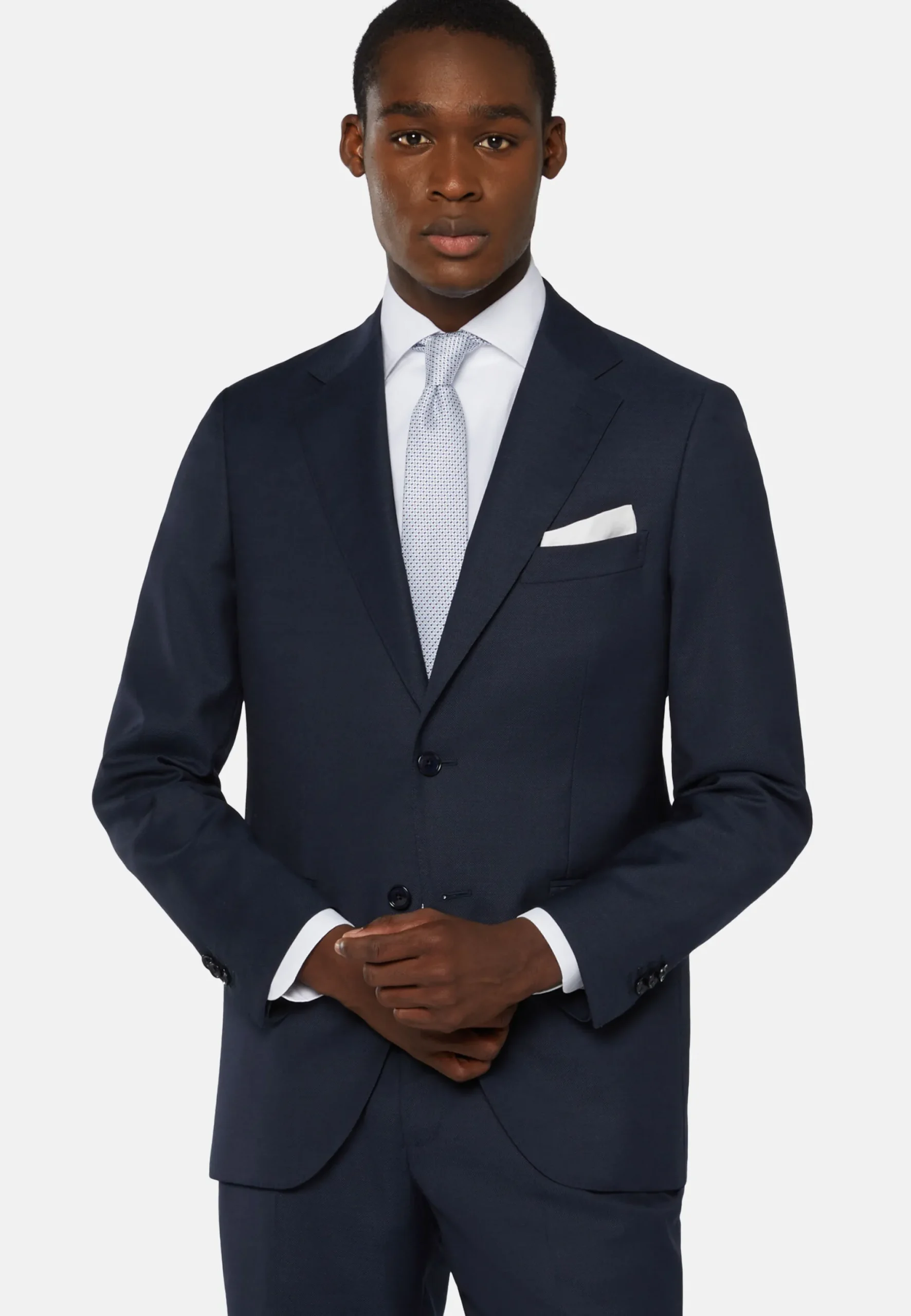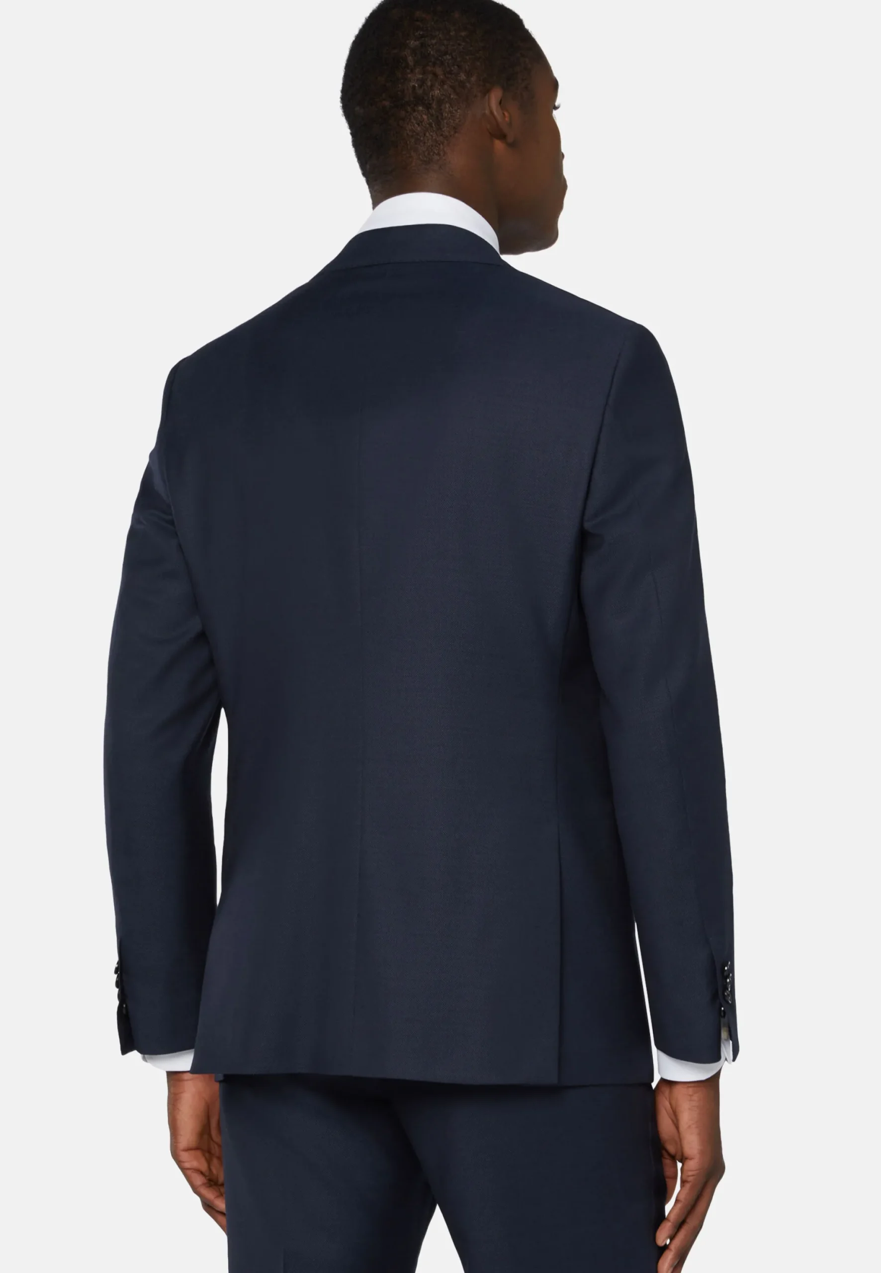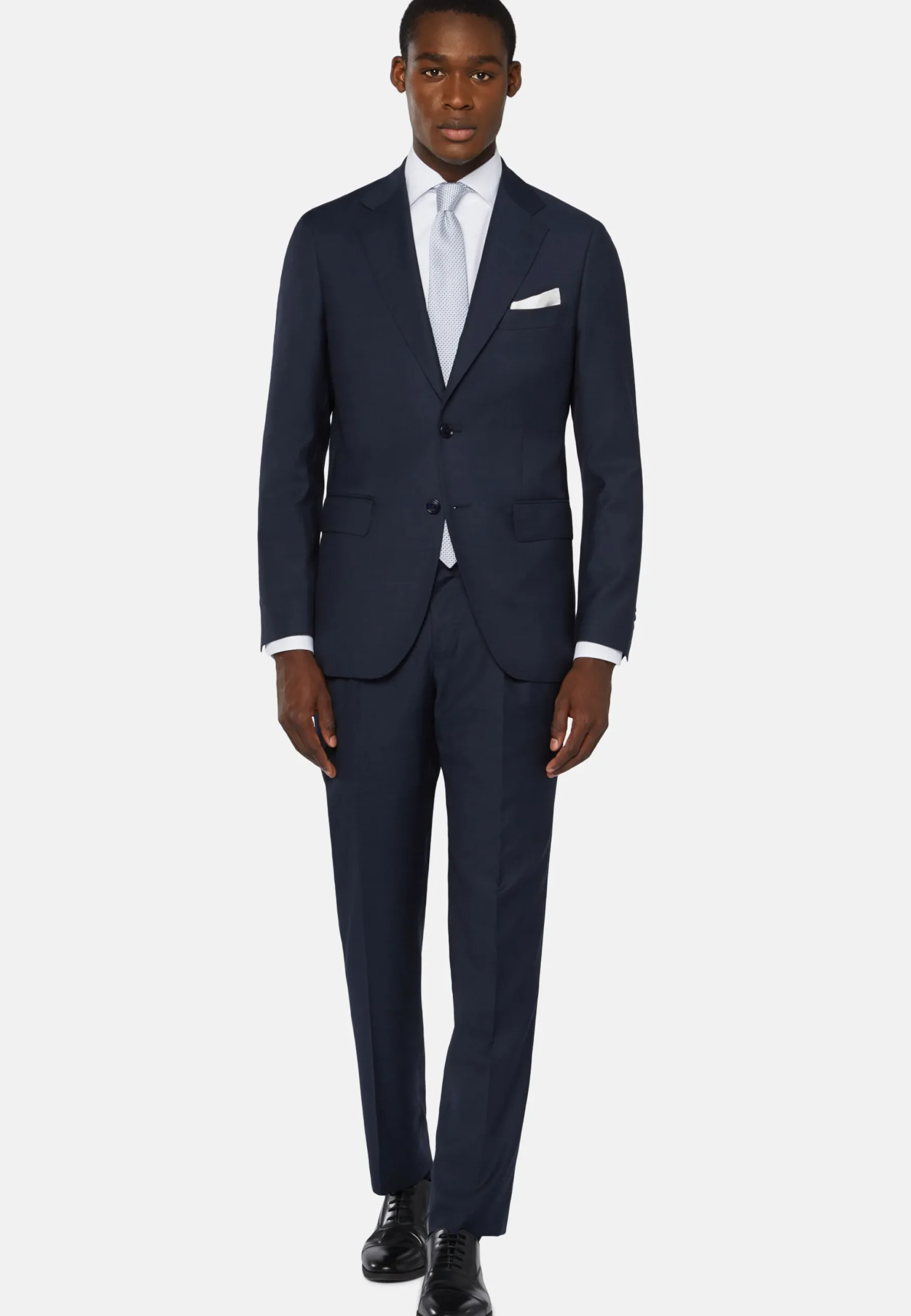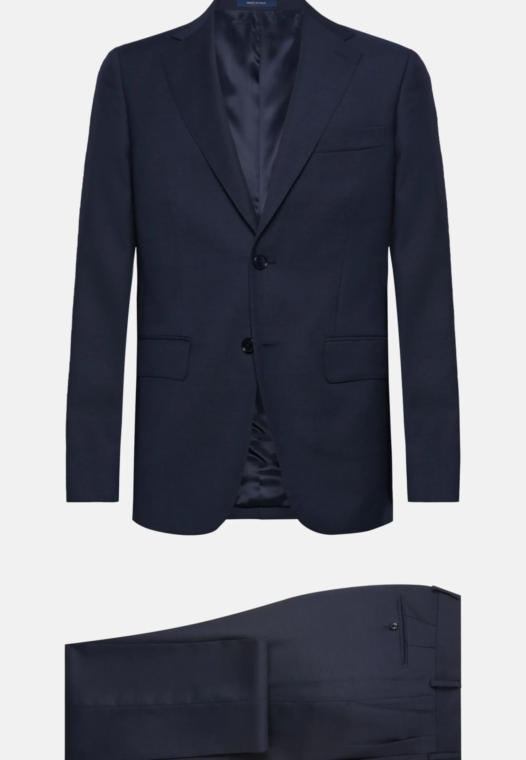 Costume coupe droite, confection semi-entoilée, à simple boutonnage, entièrement doublé avec poches à rabat.