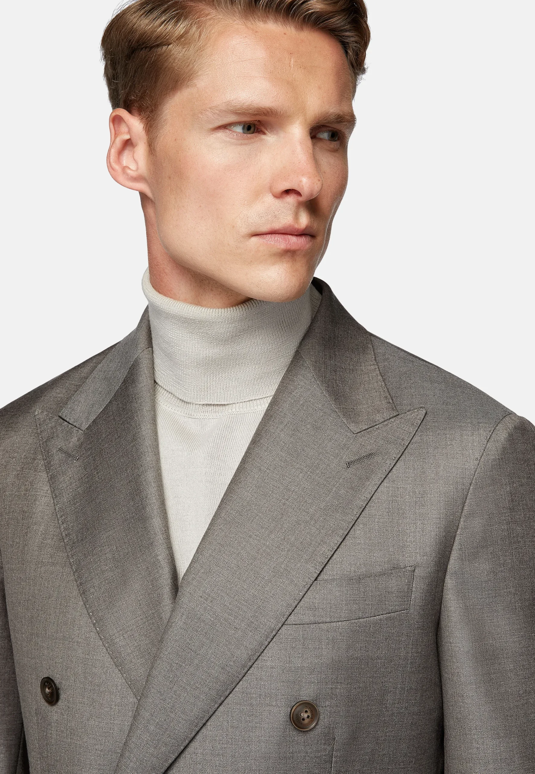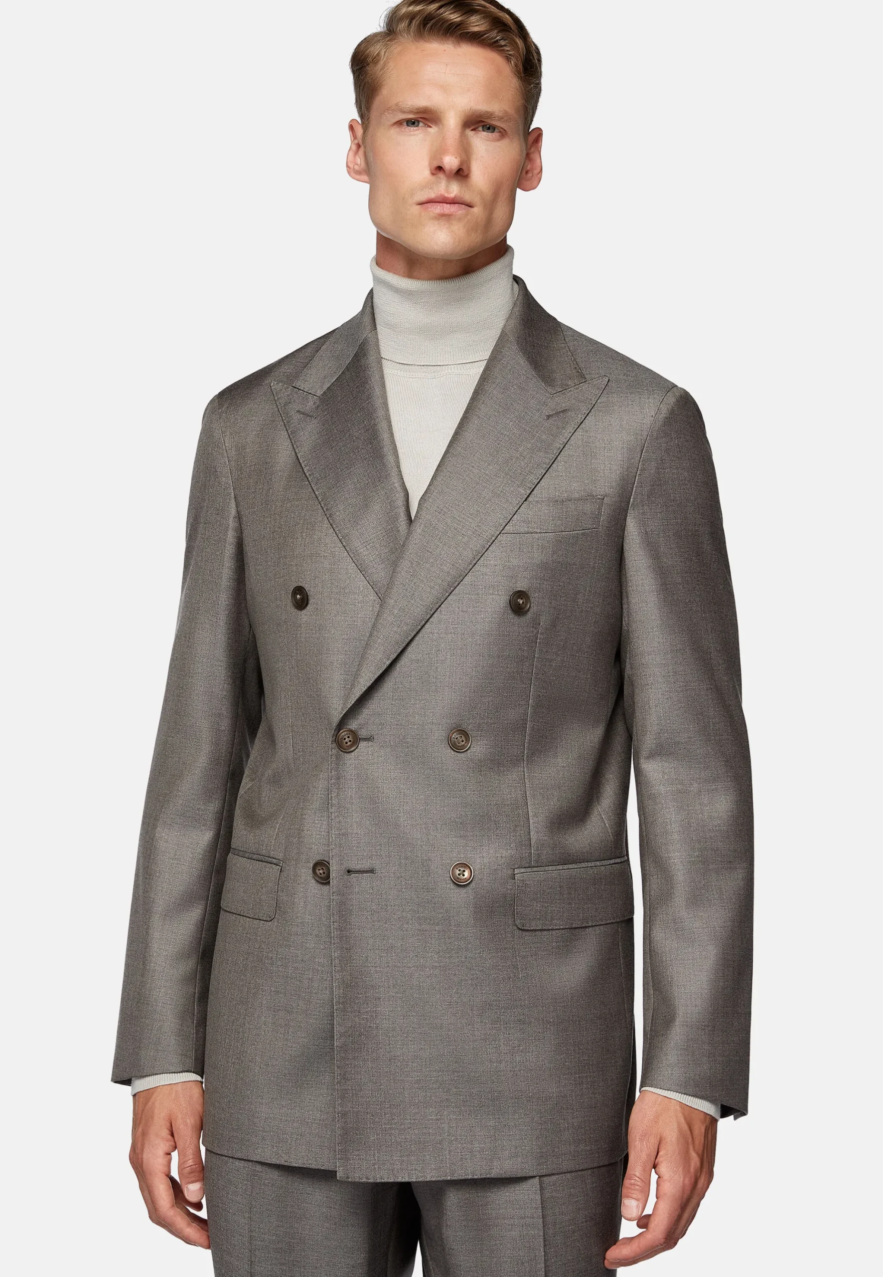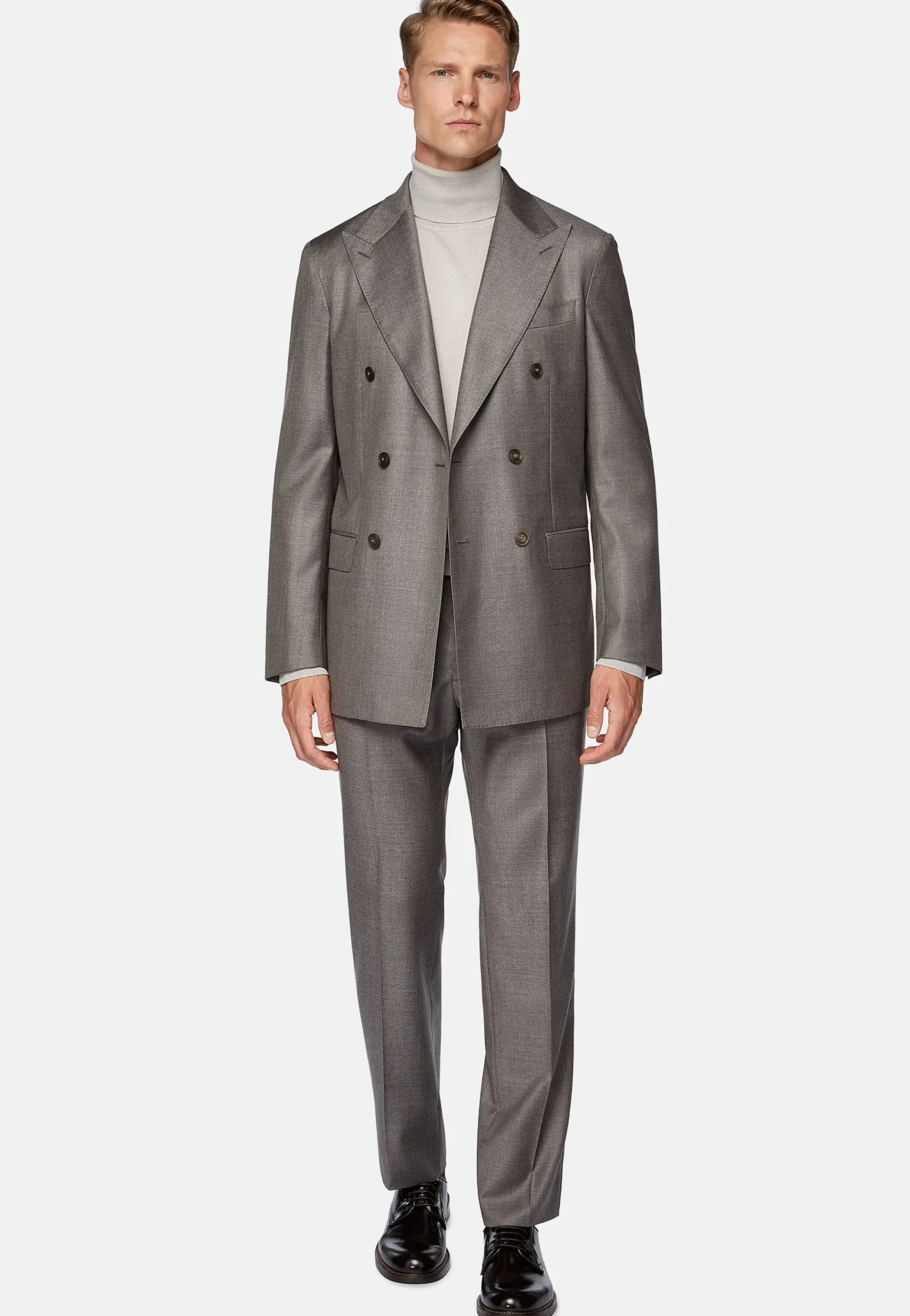 Costume croisé regular fit, confection semi-entoilée, entièrement doublé avec poches à rabat.
