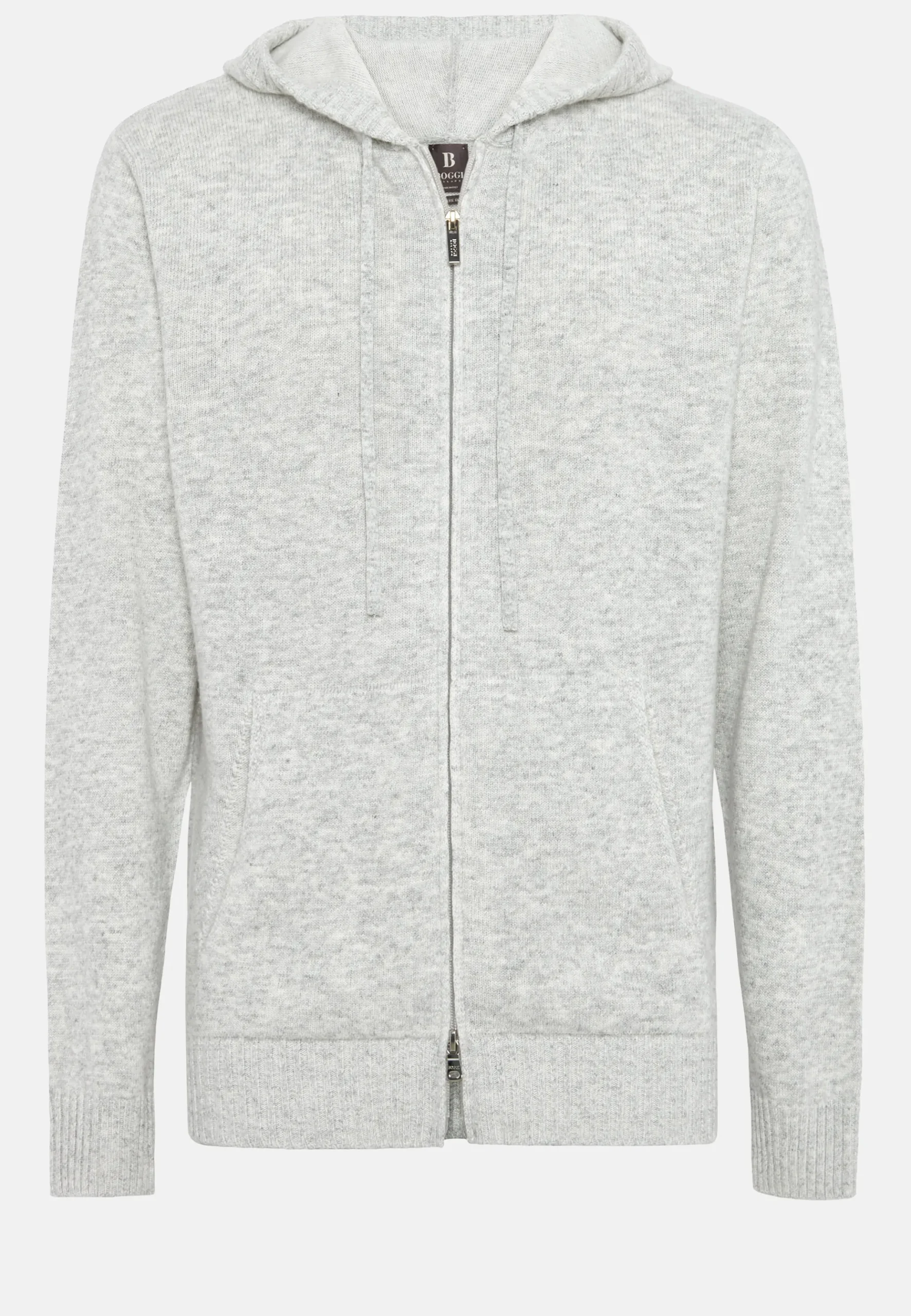 Le vêtement présente un cordon de serrage dans le même ton et des finitions en côtes anglaises vanisées aux poignets et au bas.