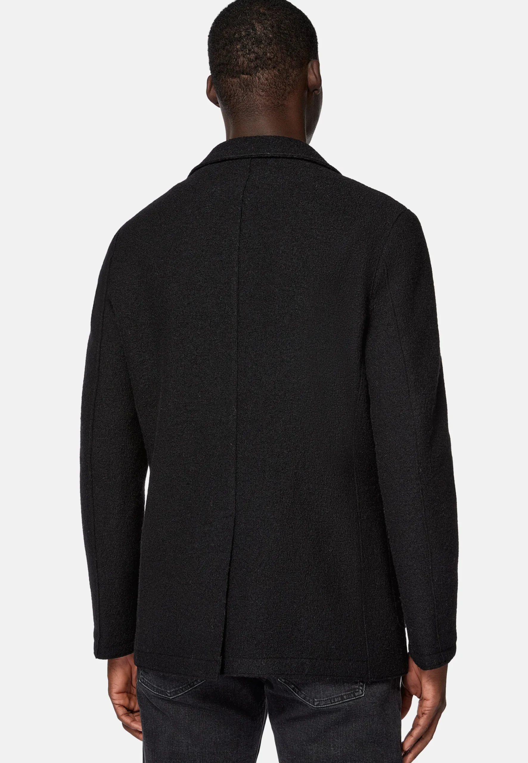 Le vêtement présente une construction particulière avec bords vifs.